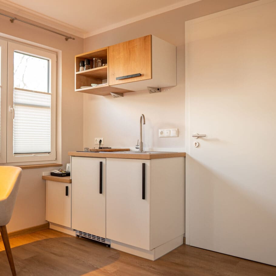 Entspannen Sie in unseren gemütlichen Studios, die mit einer Küchenzeile und Sitzecke ausgestattet sind. Mit einer Größe zwischen 22 und 24 Quadratmetern bieten diese Zimmer Platz für zwei Personen und verfügen über einen Balkon, auf dem Sie den idyllischen Garten genießen können.
